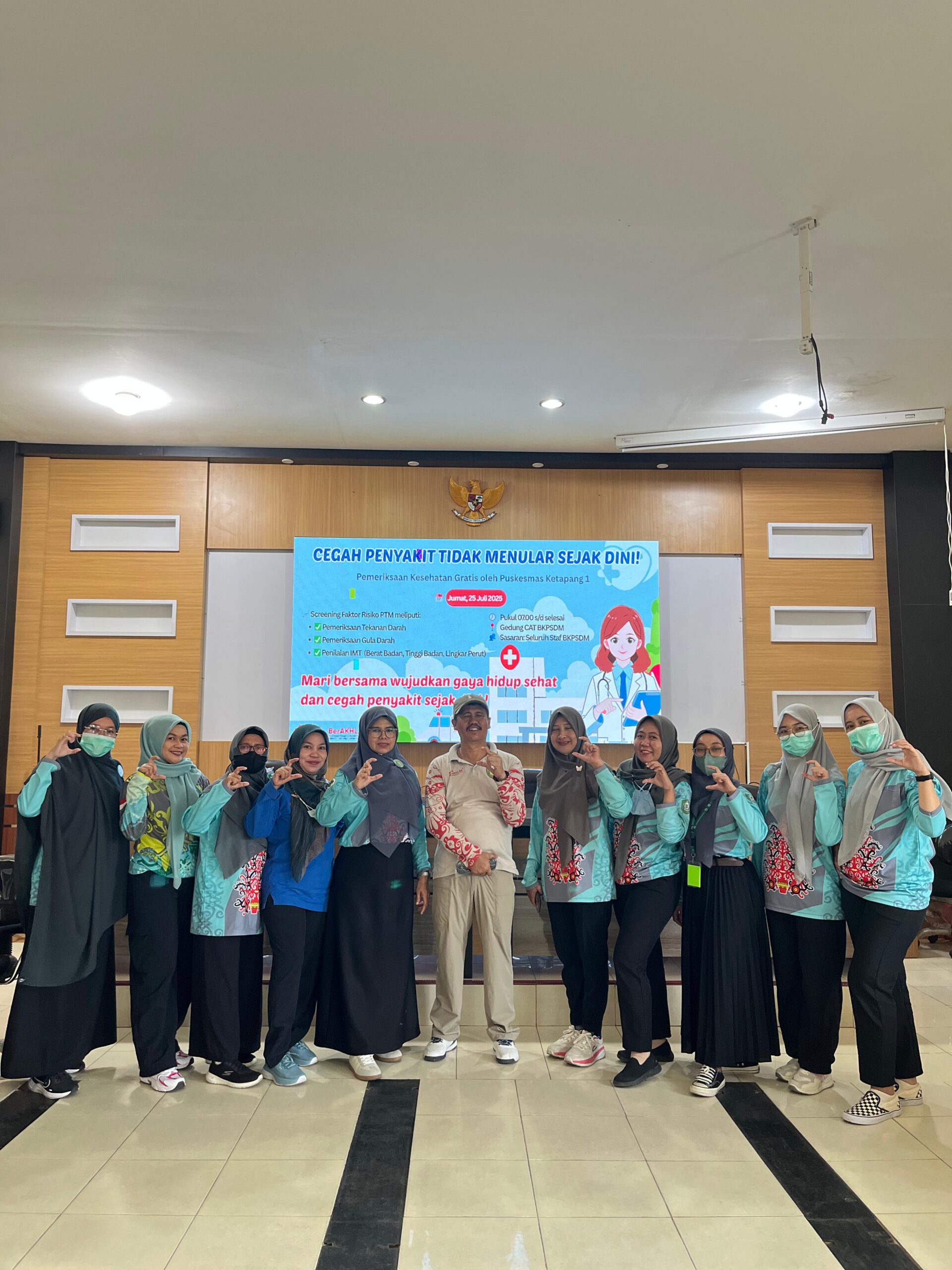 Dinas Kesehatan Kabupaten Kotawaringin Timur, bekerja sama dengan Puskesmas Ketapang 1, mengadakan kegiatan pemeriksaan kesehatan gratis untuk seluruh staf BKPSDM. Kegiatan ini bertujuan untuk mendeteksi sejak dini potensi risiko penyakit tidak menular, yang semakin menjadi perhatian utama dalam dunia kesehatan. Pada Jumat, 25 Juni 2025, mulai pukul 07.00 WIB, seluruh staf diundang untuk berpartisipasi dalam kegiatan skrining yang dilaksanakan di Gedung CAT BKPSDM. Pemeriksaan yang dilakukan mencakup tekanan darah, gula darah, serta penilaian IMT (Indeks Massa Tubuh), yang mencakup pengukuran berat badan, tinggi badan, dan lingkar perut. Kegiatan ini merupakan langkah preventif yang sangat penting, mengingat gaya hidup yang sehat dan pola makan yang baik dapat membantu mencegah berbagai penyakit tidak menular seperti hipertensi, diabetes, dan obesitas. Mari bersama-sama kita wujudkan gaya hidup sehat, cegah penyakit sejak dini, dan pastikan kesehatan tubuh kita selalu terjaga untuk mendukung kinerja yang optimal di lingkungan kerja.