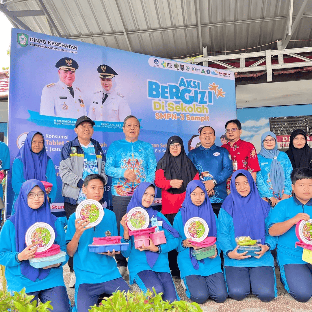 Dinas Kesehatan Kabupaten Kotawaringin Timur melaksanakan kegiatan Gerakan Aksi Bergizi di SMPN-3 Sampit pada tanggal 13 Februari 2026. Kegiatan ini dihadiri langsung oleh Pj. Sekretaris Daerah Kabupaten Kotawaringin Timur, yang dalam sambutannya menyampaikan pentingnya memastikan generasi muda tidak hanya cerdas secara akademik, tetapi juga sehat secara fisik dan mental. Beliau menekankan bahwa gizi yang baik akan mendukung tumbuh kembang yang optimal, meningkatkan konsentrasi belajar, serta membentuk karakter generasi yang kuat dan produktif.