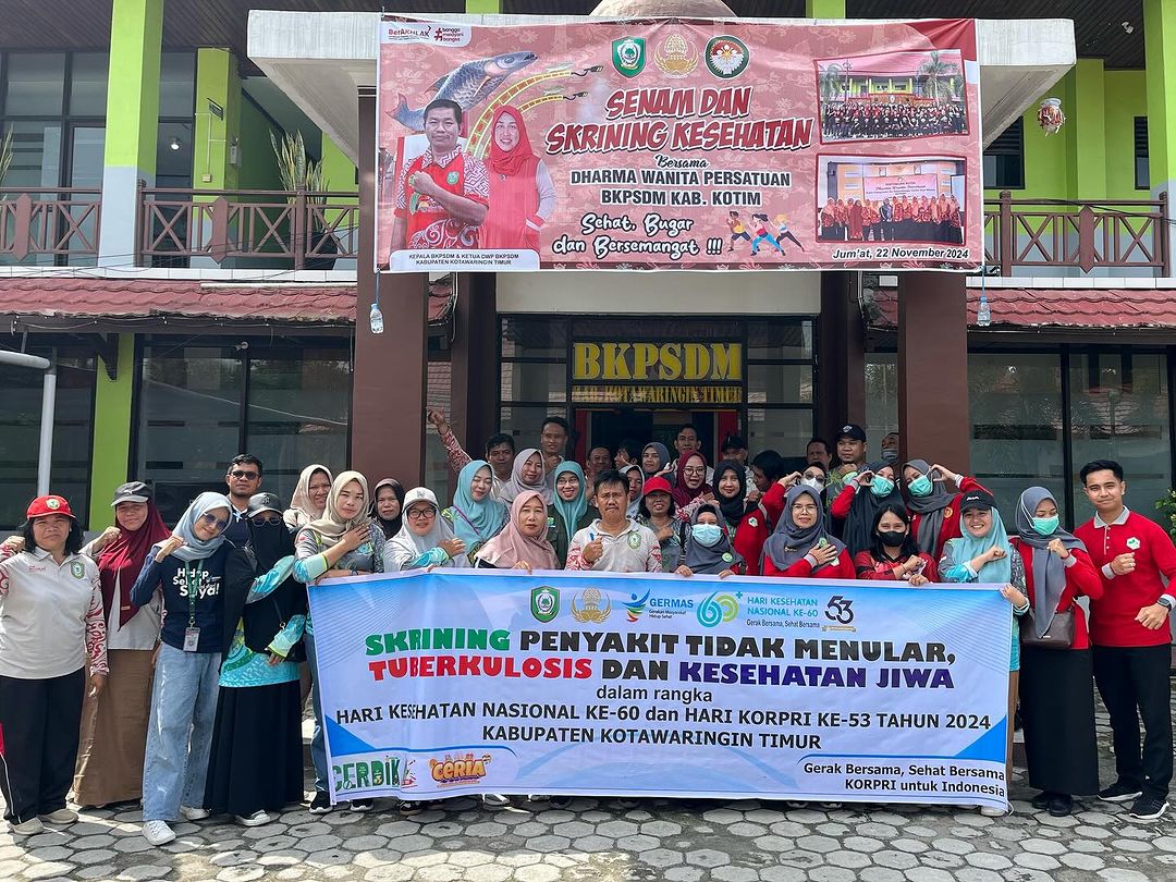 Dalam rangka memperingati Hari Kesehatan Nasional ke-60 dan Hari Koperasi Pegawai Republik Indonesia (Kopri) ke-53 tahun 2024, BKPSDM Kabupaten Kotawaringin Timur menyelenggarakan kegiatan skrining kesehatan di lingkungan mereka, bertujuan untuk meningkatkan kesadaran akan pentingnya kesehatan.